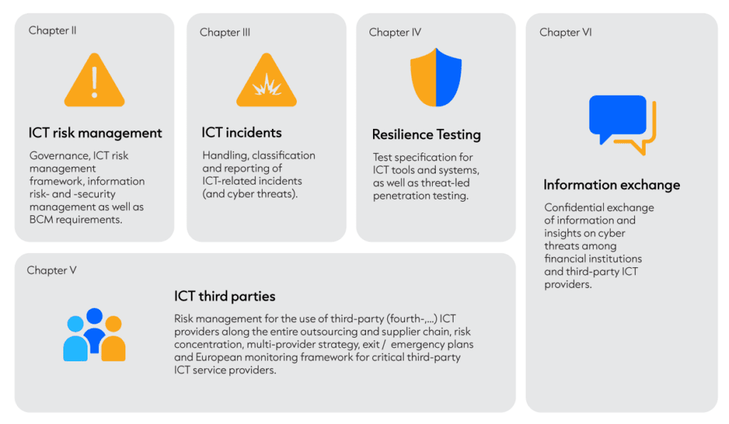 Overview of the 5 focus points of the Digital Operational Resilience Act DORA