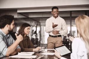 We share knowledge and encourage others to develop. Our initiatives range from Lab Weeks where interested people can meet and develop a specific theme, to our Digital Accelerator. In the Digital Accelerator, students from different backgrounds come together to find daring and innovative solutions for a strategic challenge of one of our customers in a short space of time. Students learn more about themselves, develop themselves and can make an impact on an organization.